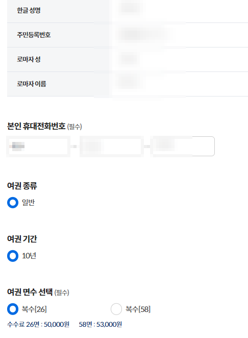 신여권은 파란색 커버로 만들어져 있으며 기존보다 보안성과 내구성이 좋습니다. 유효기간은 10년이며, 수수료는 26면 50,000만 원, 58면은 53,000원입니다.