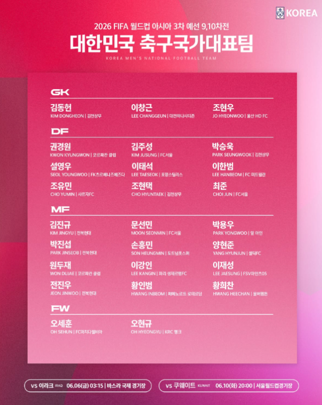 6월 A매치 명단